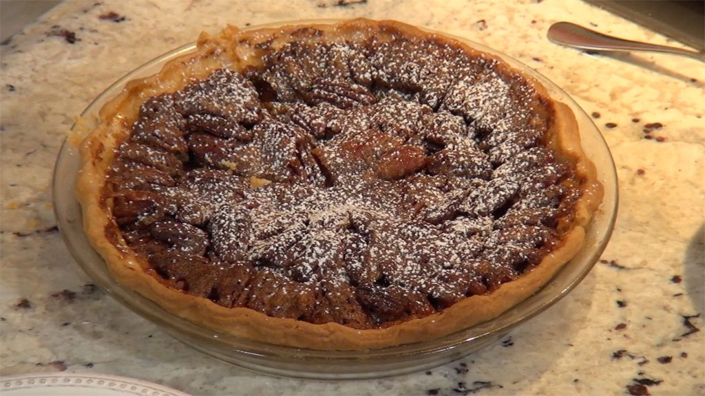 Remove the pie to a cooling rack to cool. Can make one day ahead and keep in a cool, dry place.
