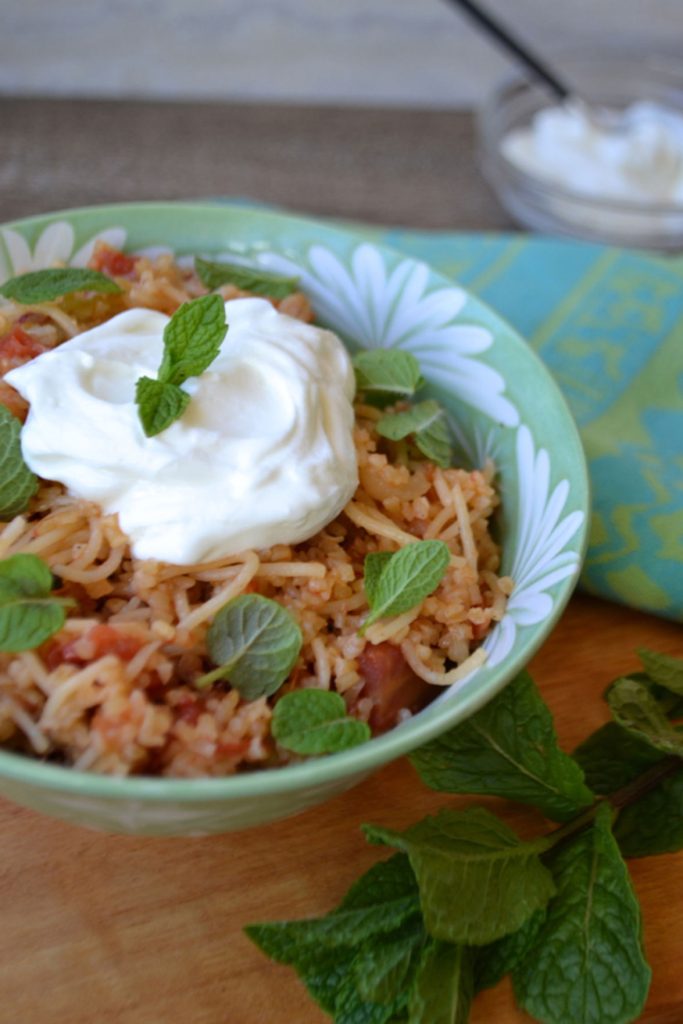 “Theia means aunt in Greek and pilafi is a Greek pilaf. My Theia Anthoula taught me how to prepare this recipe many years ago and I’ve been making it ever since.”