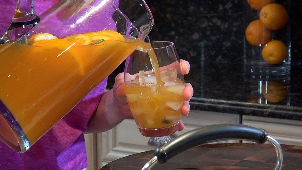 But even if you’re sitting at the kitchen table, or watching TV, Orange Mango Iced Tea will take you away to a world of soft breezes and relaxation.