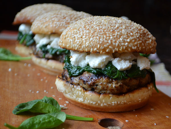 Spinach and feta turkey burgers