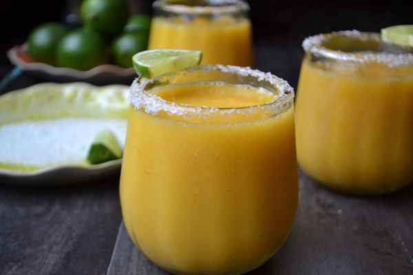 Anyone looking for a change from the usual lime-based margarita will want to try Shereen Pavlides’ frozen mango margaritas, made with chunks of fresh mango.