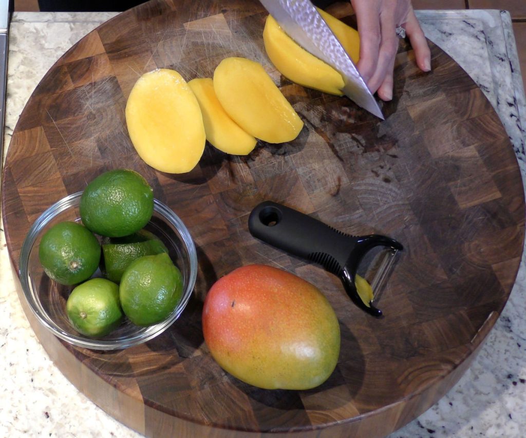 Once frozen, remove the chunks into a large zipper bag and keep frozen until ready to use. Can do this step up to 1 week ahead. Or, in a pinch, can use frozen, diced mangoes from the freezer section of your supermarket.