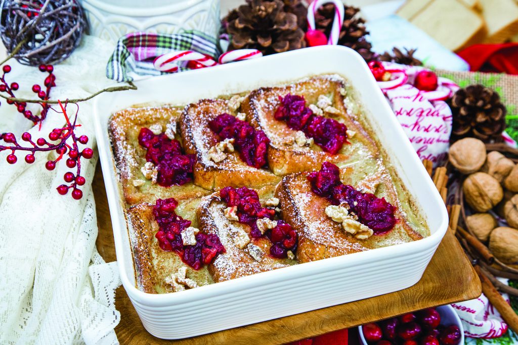 Overnight Walnut French Toast with Cranberry Walnut Ginger Compote