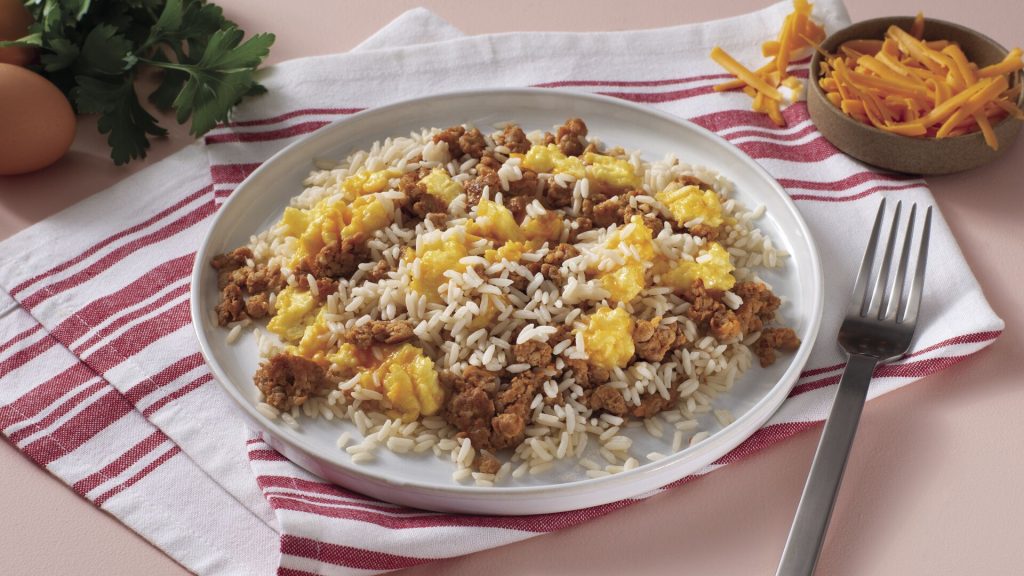 When a weekday calls for an on-the-go breakfast, make quick work of your morning meal with this Breakfast Scramble for a filling option without the unnecessary additives. Made with just four ingredients – eggs, sausage, cheese and white rice – itÄ¢¹½ÊÓÆµ perfect for a busy lifestyle. Plus, it can be customized any way you like with toppings like avocado, tomatoes, fresh herbs and more.