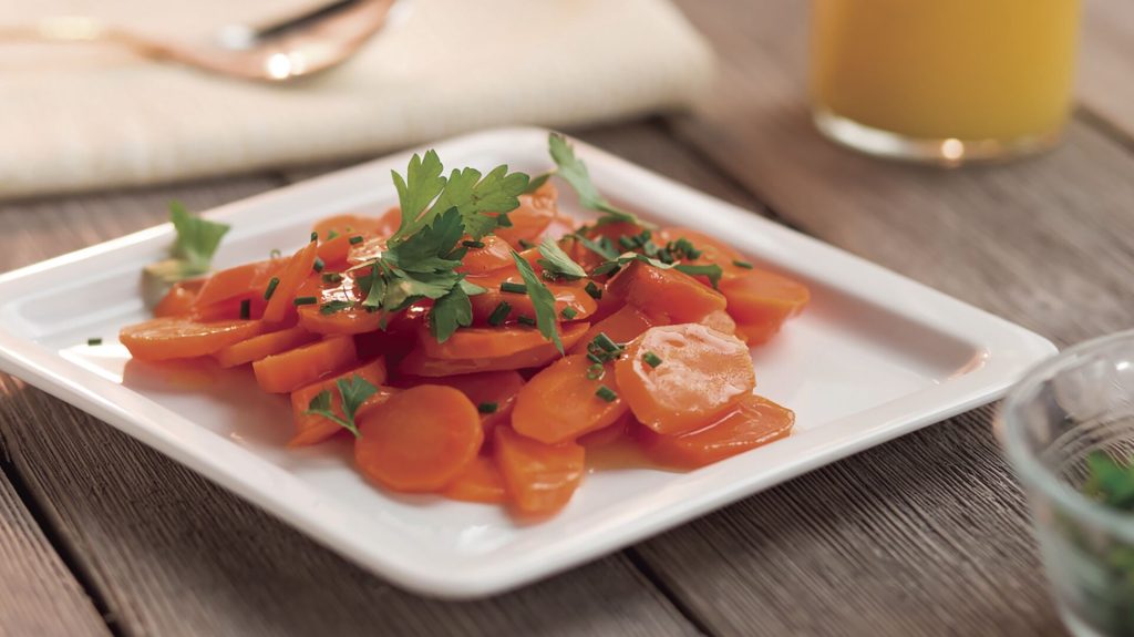 Pour sauce over steamed carrots. Top with parsley and chives.