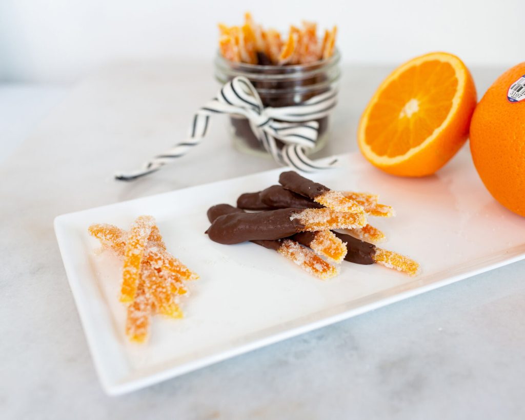 When hosting for the holidays, visual dishes that look as good as they taste lend themselves toward seasonal celebrations. Try shareable creations like this Baked Camembert Wreath with Navel Orange and Cranberry for a fun way to beautify your table. Or give an edible gift like Chocolate Dipped Candied Orange Peels – just place in a clear glass jar adorned with seasonal ribbon.