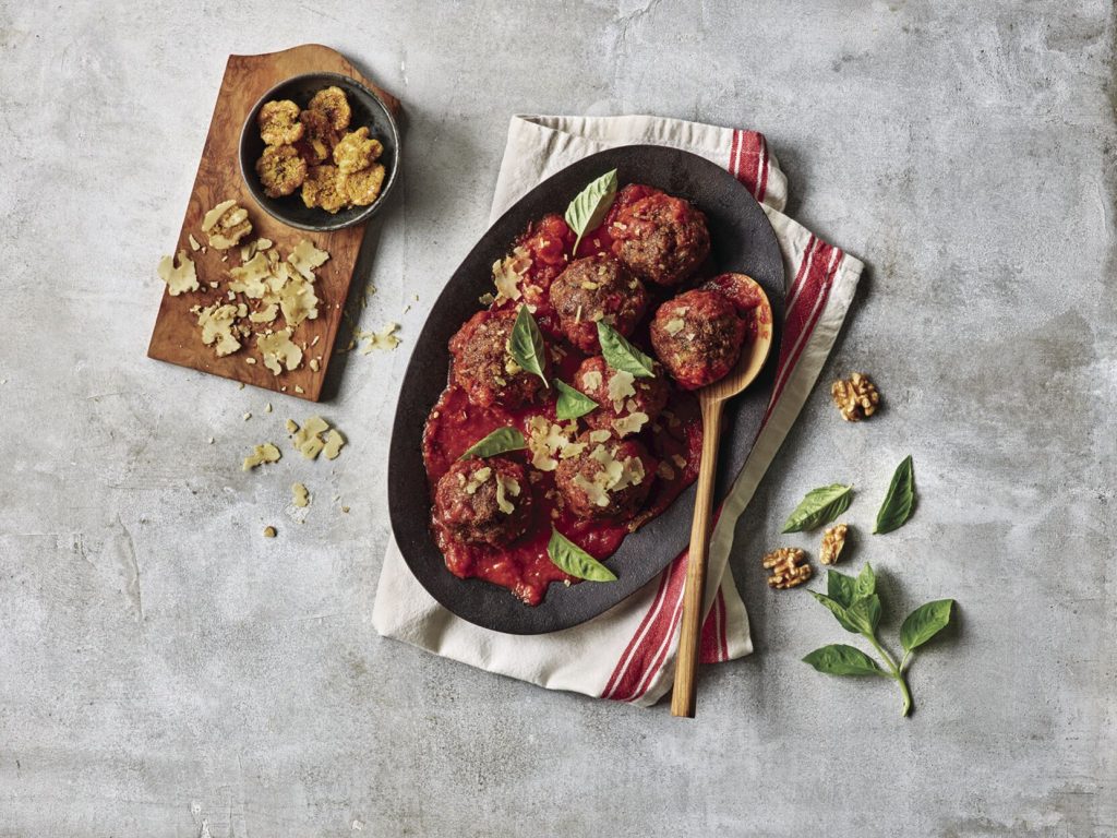 Try walnuts as an alternative to meat in recipes like Walnut Meatless Meatballs or Pizza with Plant-Based Walnut Crumble, and find more plant-forward recipes at walnuts.org/plantrecipes.