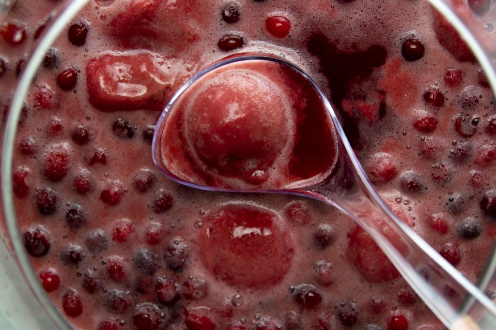 Add some frozen cranberries on top for garnish and another pop of that deep, red color.