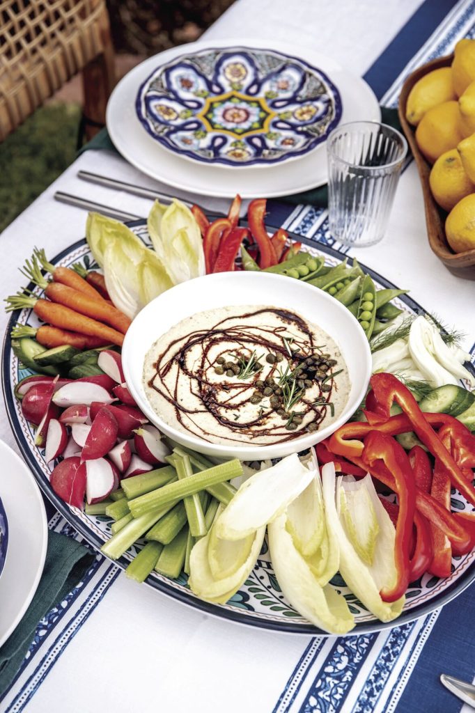 raw vegetables, such as carrots, celery, cucumber spears, endive leaves, sliced fennel and bell pepper strips, for dipping