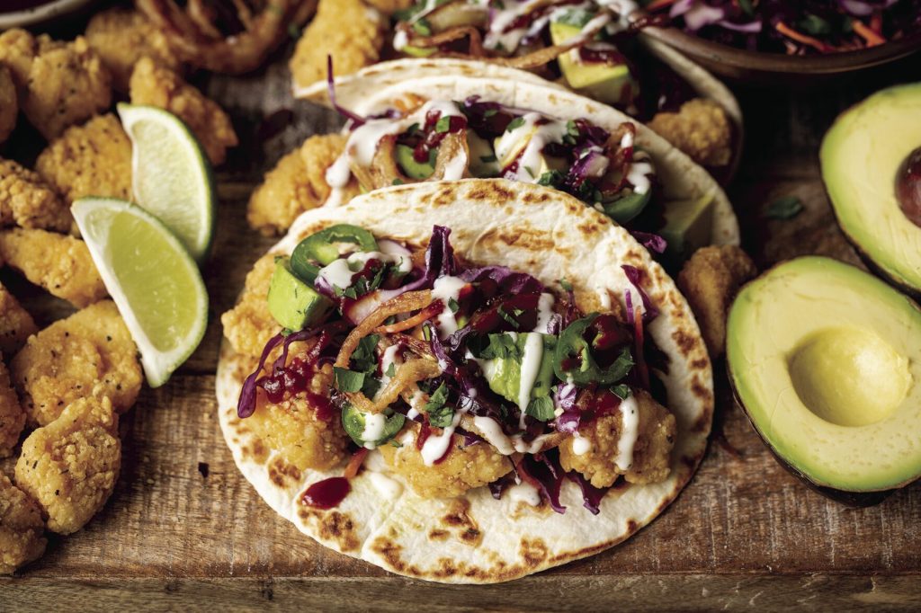 Consider these Barbecue Ranch Breaded Chicken Tacos to call loved ones to the table with chunks of tender chicken piled high with homemade spicy vinegar slaw, fried onions and avocado drizzled with barbecue sauce and ranch dressing.