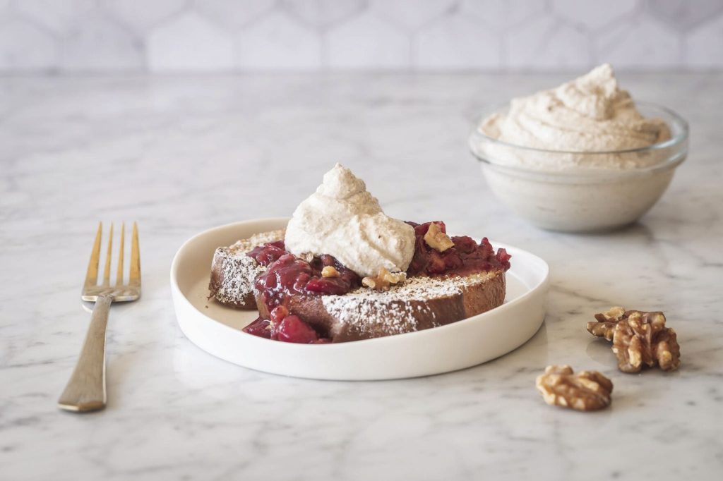To achieve thicker whipped cream, add remaining walnuts and puree until light and fluffy.