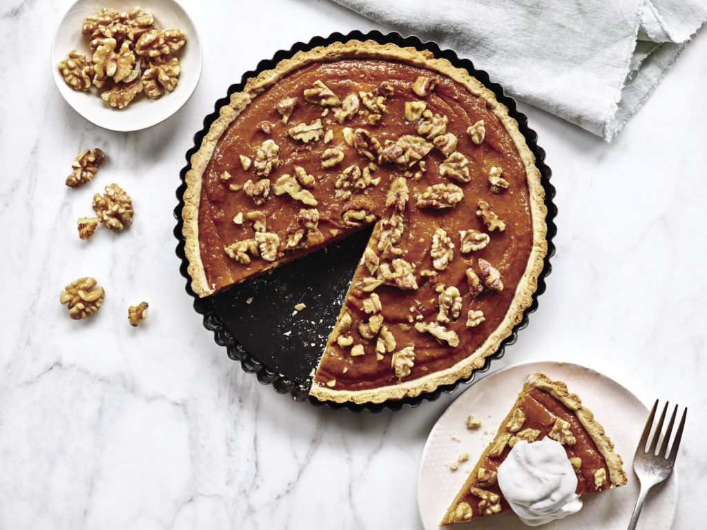 Part pumpkin, part cheesecake, this Walnut Pumpkin Cream Cheese Tart spices up the classic pumpkin pie recipe. Top it, or other favorite desserts, with light and airy Vanilla Walnut Whipped Cream flavored with honey and vanilla to complement festive dishes.
