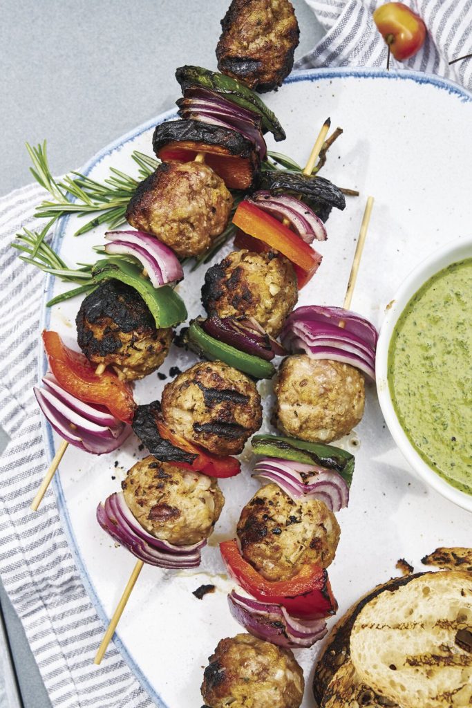 Lamb Meatball and Veggie Skewers with Herb Sauce