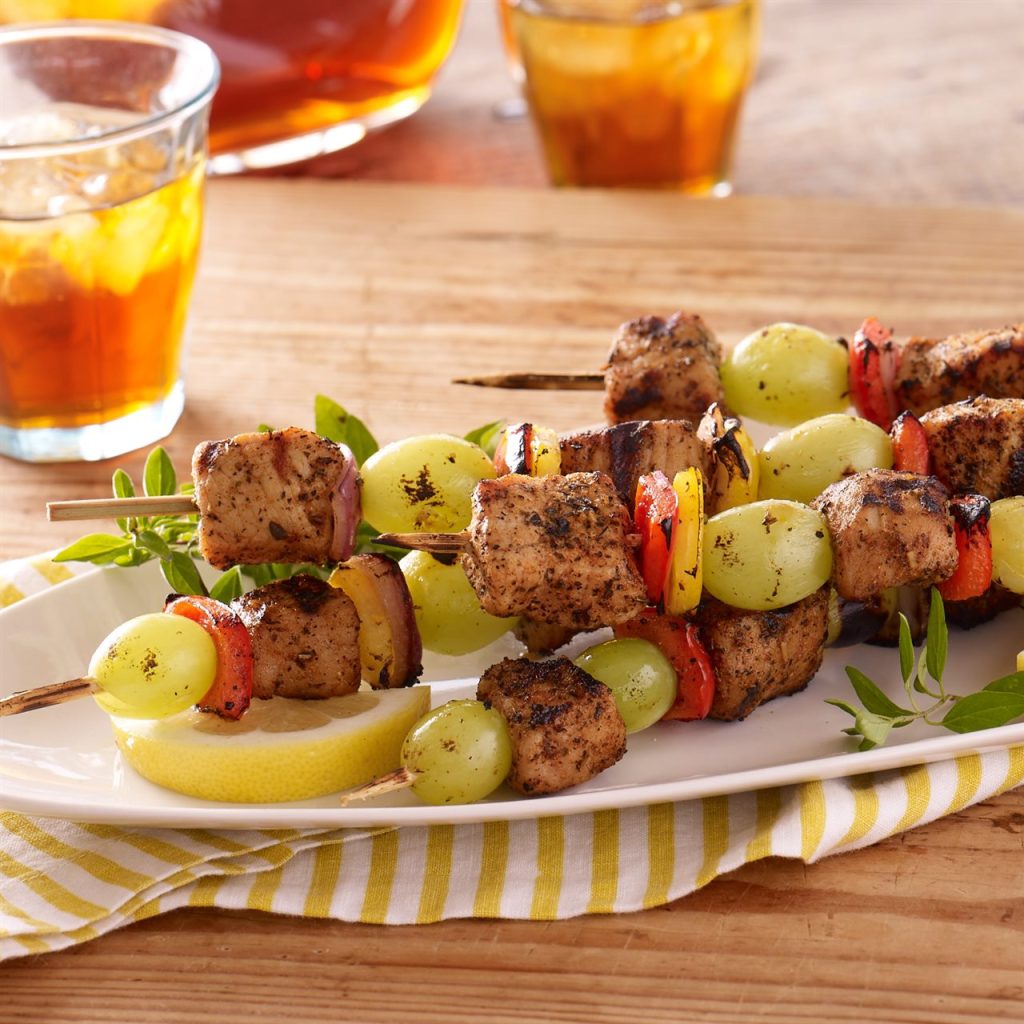 Grilled Blackened Pork and Grape Kebabs