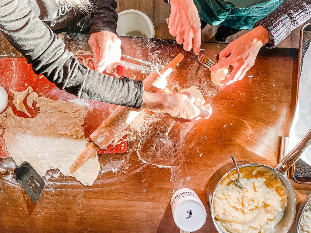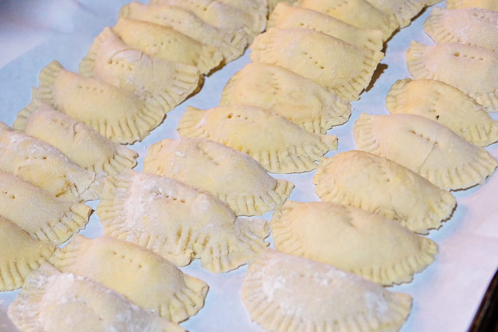 Though there are a variety of options for fillings – sauerkraut and mushroom, sautéed cabbage, meat and cottage cheese – potatoes and cheddar cheese was our favorite, and the only version we made.