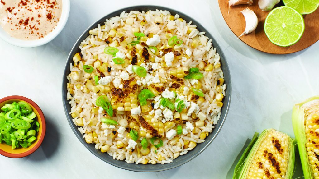 When the occasion calls for a meatless meal, this Mexican Grilled Corn Salad serves as a crowd favorite at barbecues or as a simple weeknight dinner. Grilled corn, sour cream, mayonnaise, feta cheese and chili powder are tossed with sweetly aromatic Success Jasmine Rice that cooks up soft and fluffy for a uniquely delicious flavor.