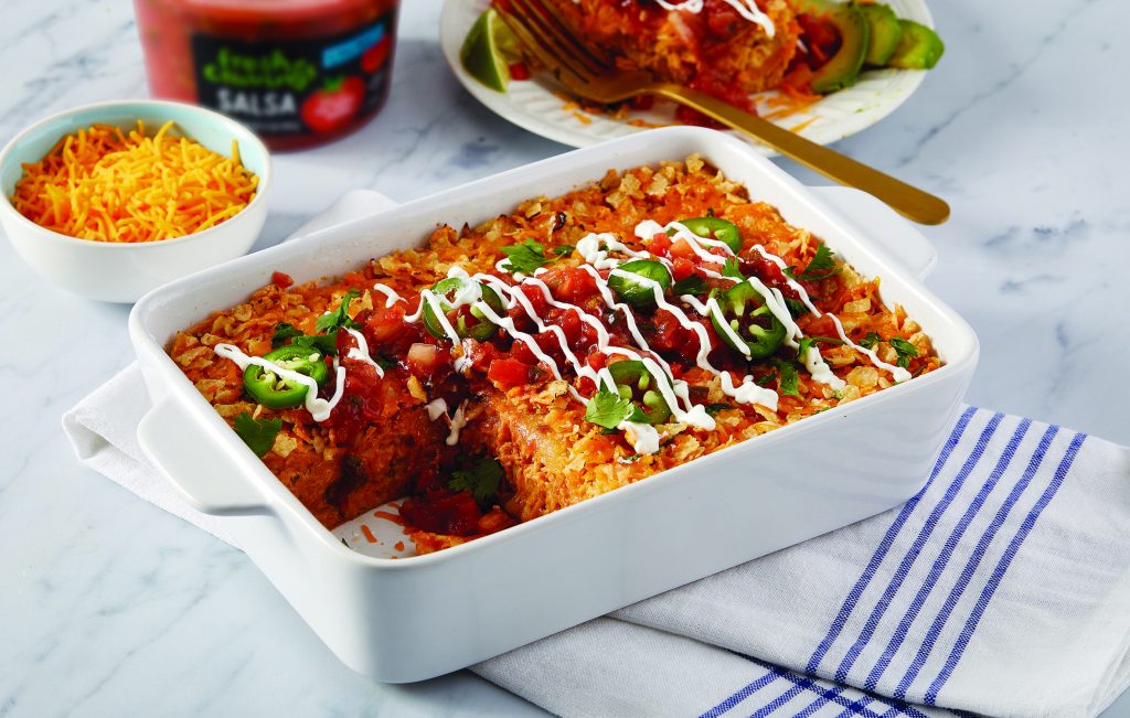 Kickoff your menu with an app like these Jalapeno Bacon and Salsa Biscuit Bites that meld together traditional tailgate tastes. Then put a Tex-Mex twist on a traditional favorite with this Enchilada Lasagna, perfect for feeding a crowd of hungry fans.