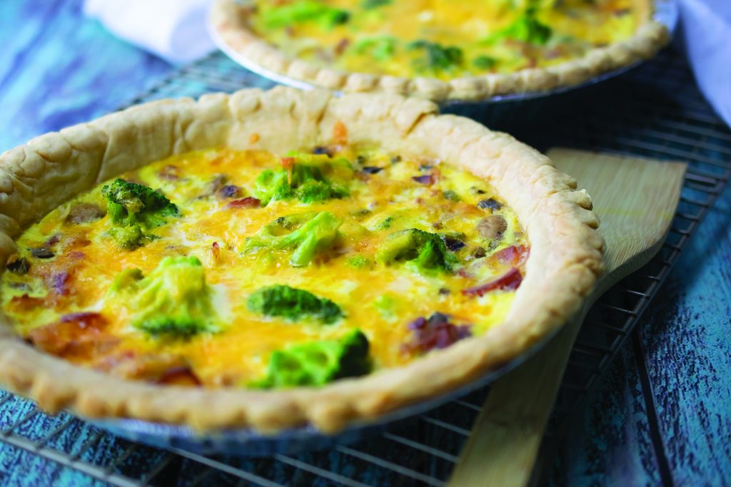 Try this Easy Brunch Quiche that is sure to have your senses swirling with every bite. This quiche is layered with many tastes and a variety of ingredients to give it crave-worthy flavor, from broccoli and bacon to mushrooms, eggs and melty cheese.
