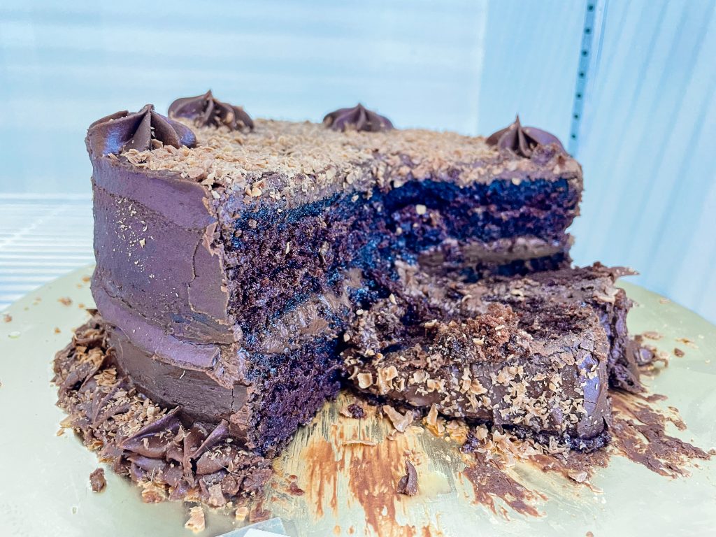 Combine dry ingredients in large bowl. Add remaining ingredients except coffee. Beat on medium speed for two minutes. Stir in hot coffee. Pour into greased 9×13 pan and bake at 350 degrees for 35 to 40 minutes, or pour into two 8-inch round pans and bake for 30 to 35 minutes.