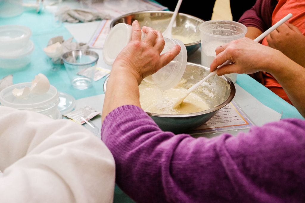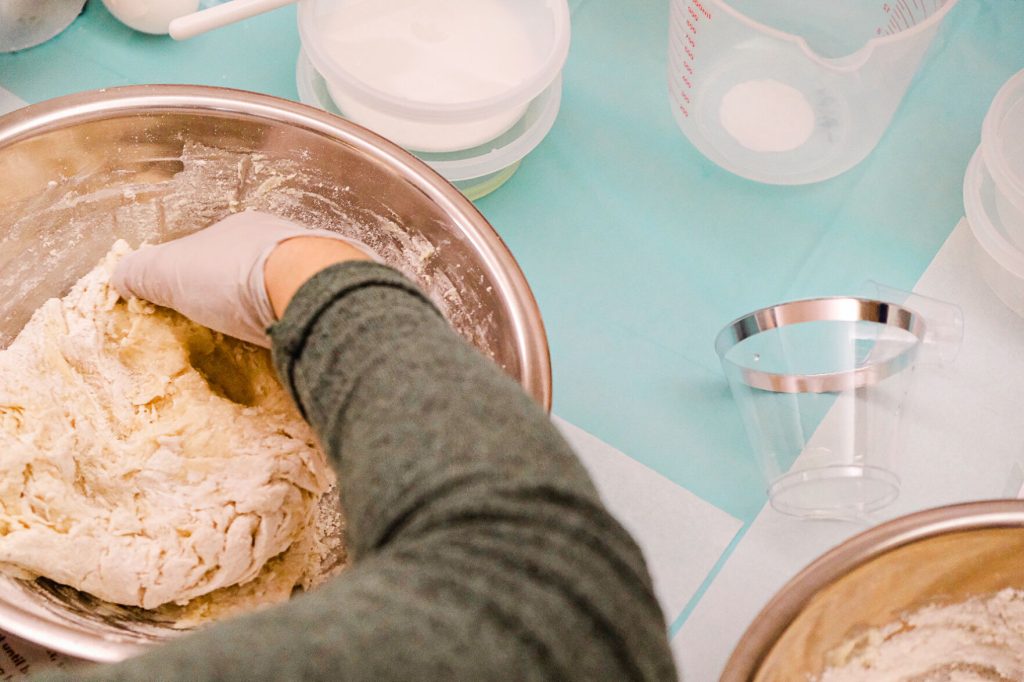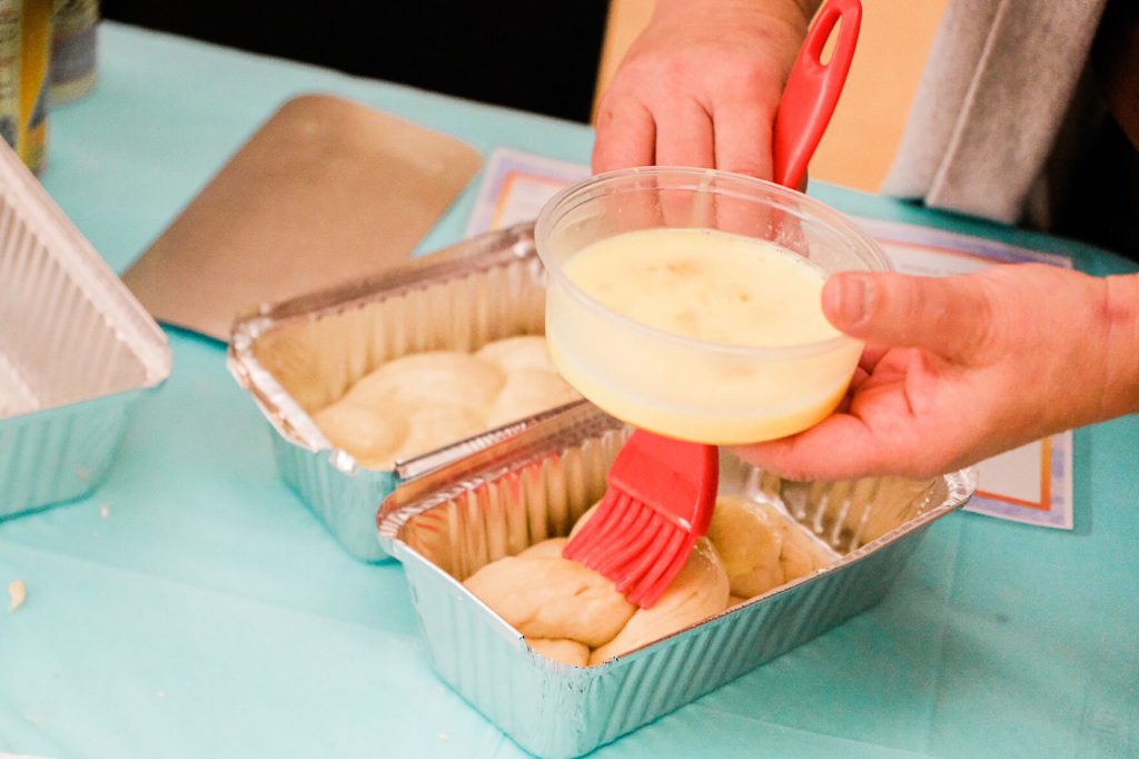 Dough braids complete, women topped their challah loaves with everything seasoning or a sweet crumble, left one loaf on the table for Loaves of Love and headed out with a warm “happy birthday” or “thank you” or “good night!”