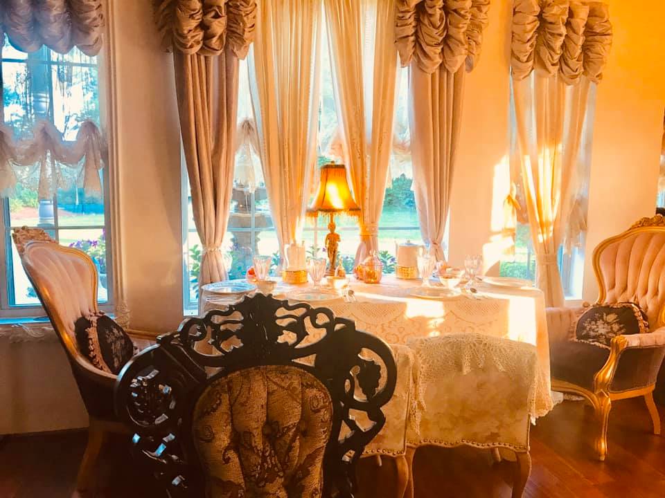 Guests often dress for the experience, wearing hats and gloves for their outing to the green Victorian house surrounded by hydrangeas in the summer.