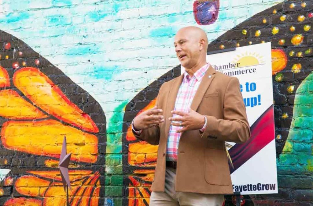 State Sen. Pat Stefano speaks at the unveiling of an outdoor performance area at the Geyer Performing Arts Center in Scottdale.