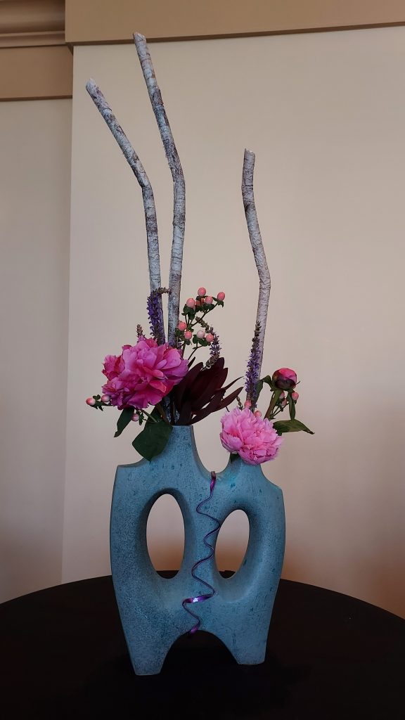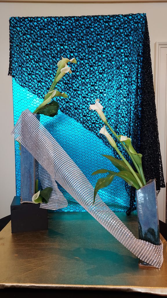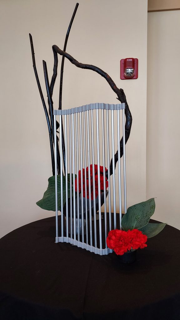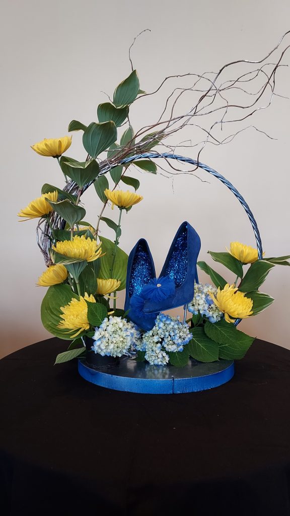 Judges presenting their designs were Diane Hughes, Sue Luisi, Mary Jane Martucci, Marie Mueller, Angie Raitano, Vina McLeod Rudolph, and District member Wanda Sherry. A very special member, posing as Elvis, added comments about Elvis’ life and the designs. Elvis presented a scarf to each designer as he left the building.