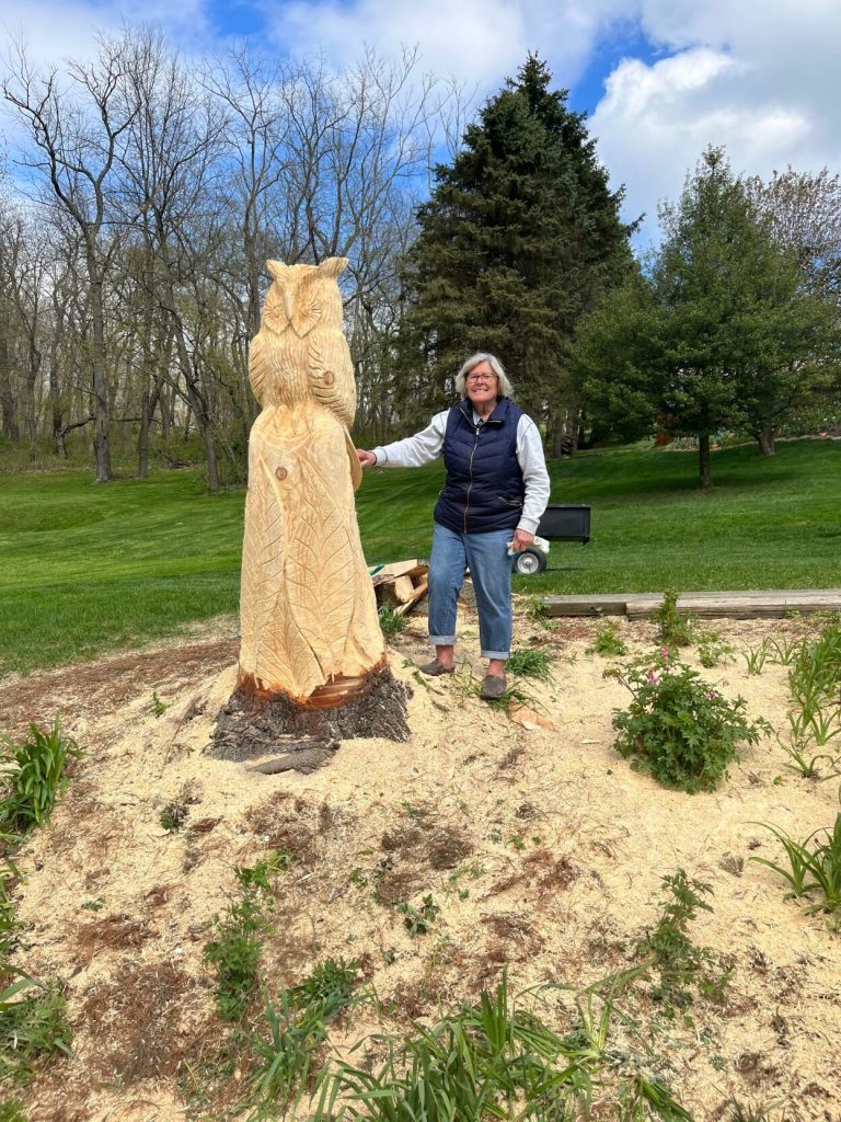 King worked with Altman to figure out what the stump would become, and on Wednesday, he transformed it into a great horned owl.