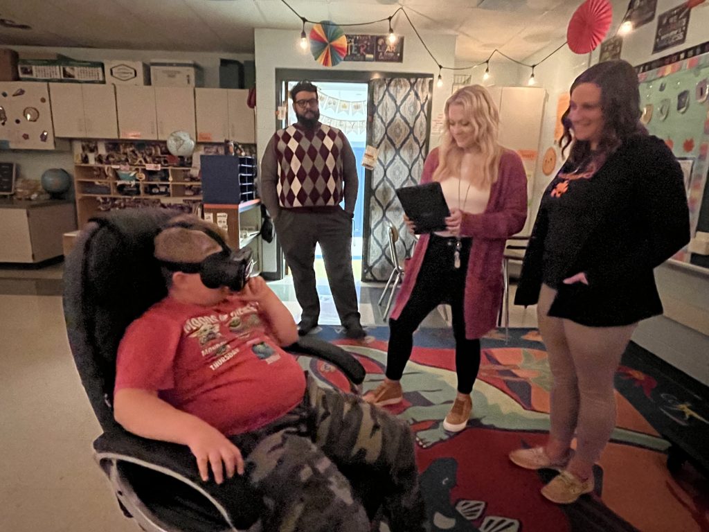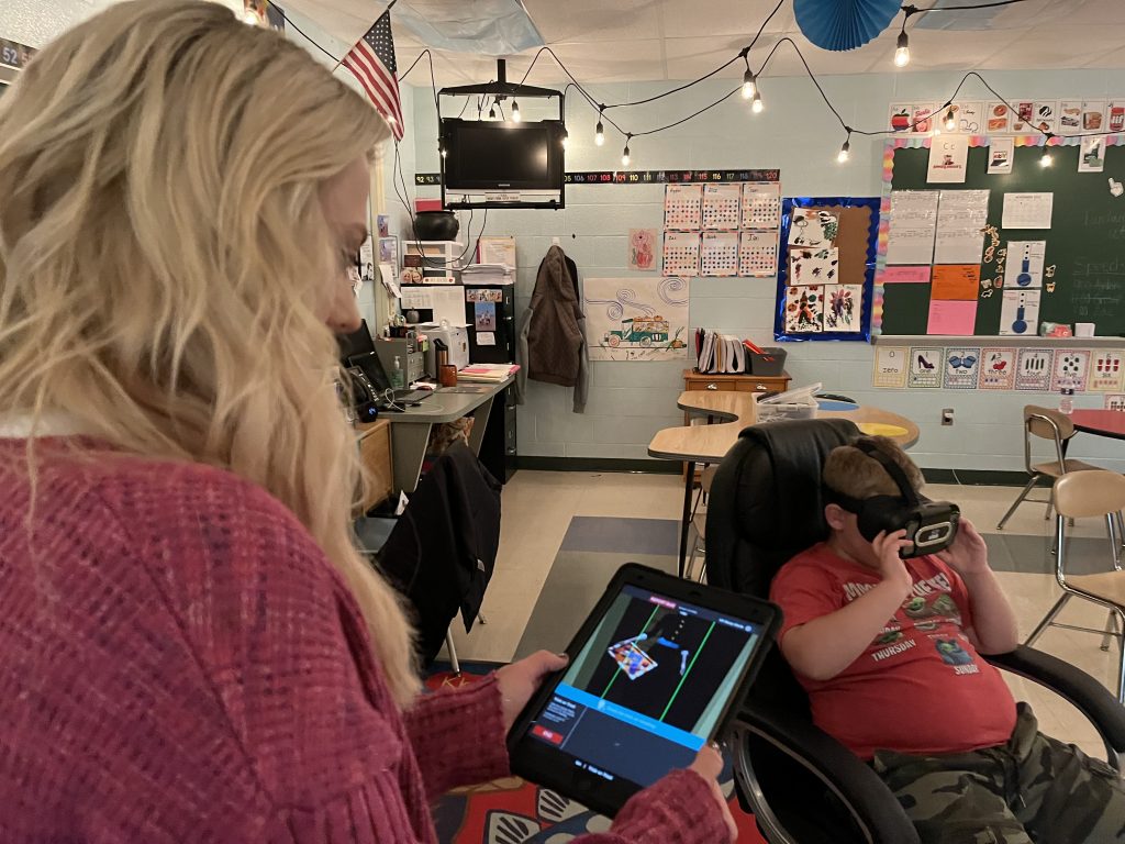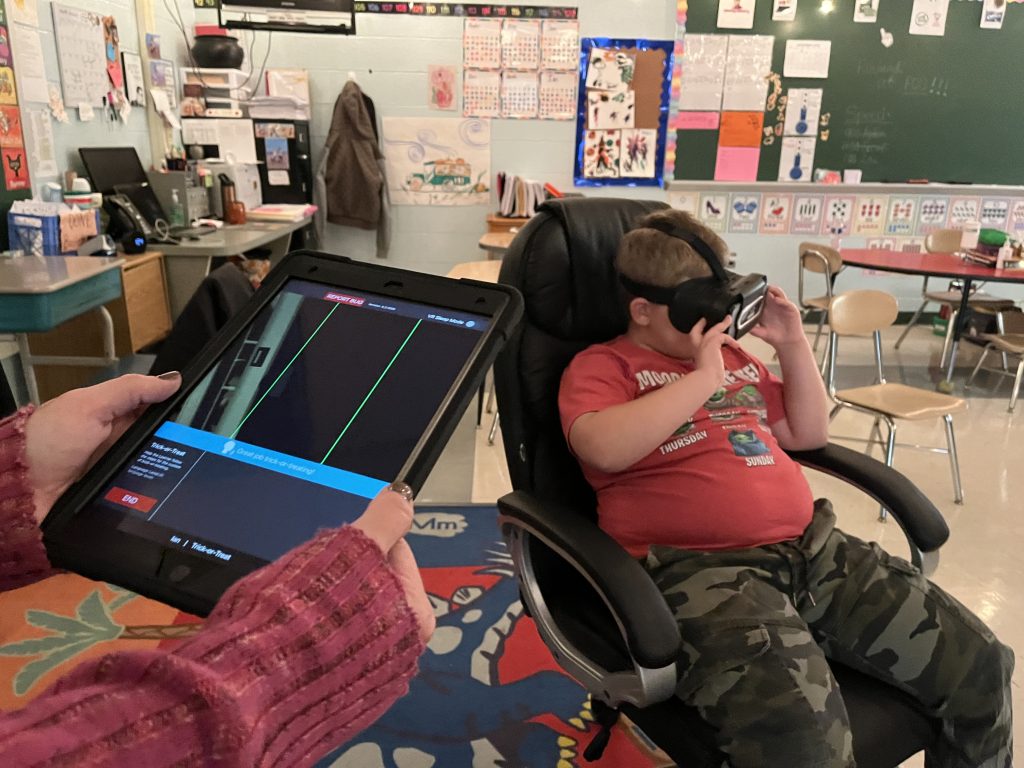 Studies show a virtual reality environment makes it easier for children with autism, who may struggle to interpret nonverbal clues, to focus on a skill being taught in the lessons, and Sara Bates, J-MĢƵ Director of Special Services, said the VR program is having a positive impact on the students.