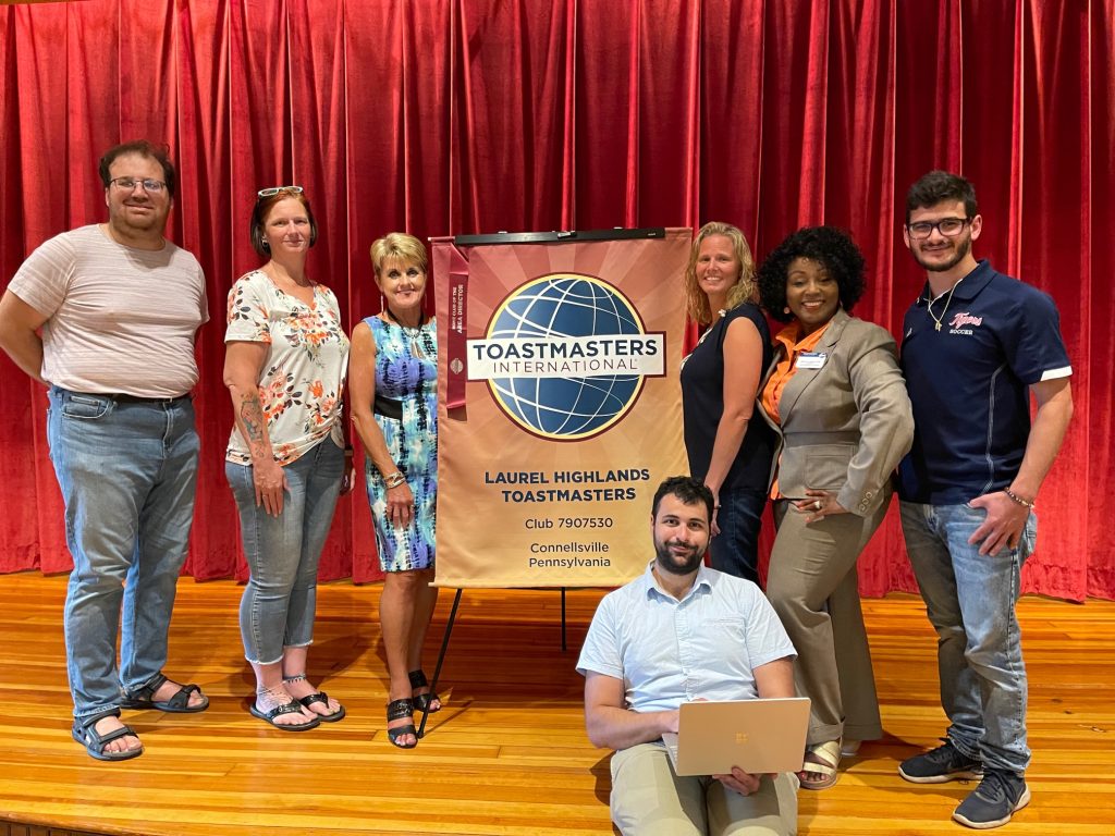 The Laurel Highlands Toastmasters Club meets every second and fourth Tuesday at 6 p.m., at their new location in the Connellsville Community Center, 201 East Fairview Ave., Connellsville. Guests are welcome at no charge. For more information or to get the link to participate virtually, contact Jacobs at 412-901-0510, email laurelhighlandsTM@gmail.com, go to Facebook @laurelHighConnellsvilleTM, or to the club website at www.LaurelHighlands.ToastmastersClubs.org.