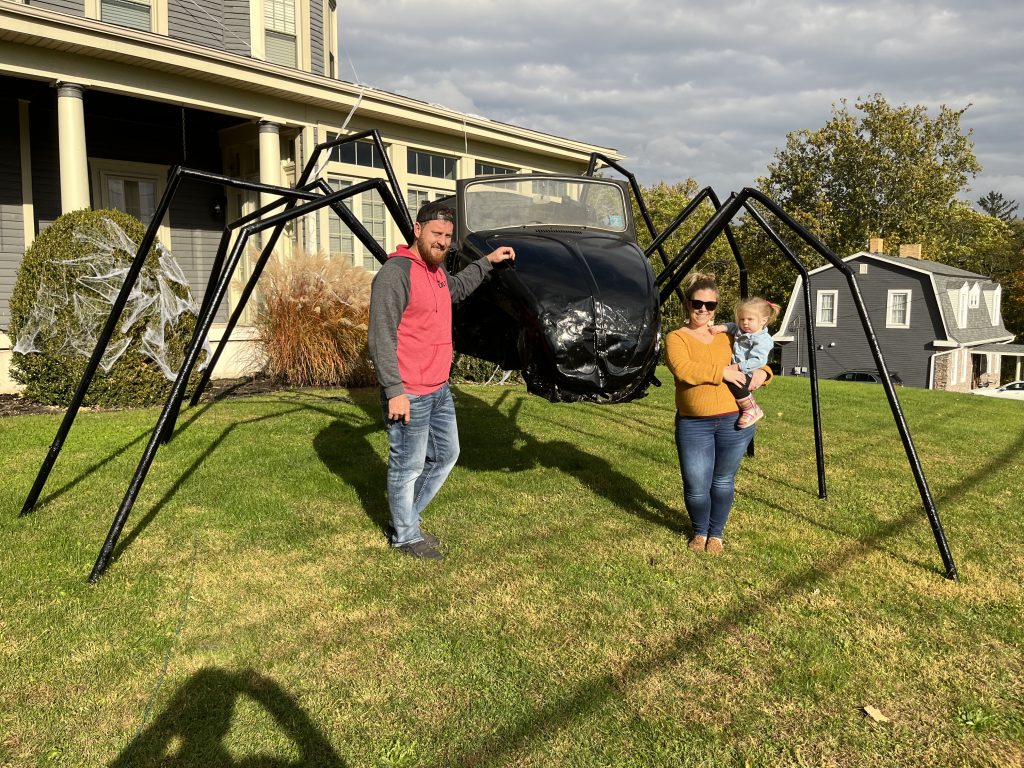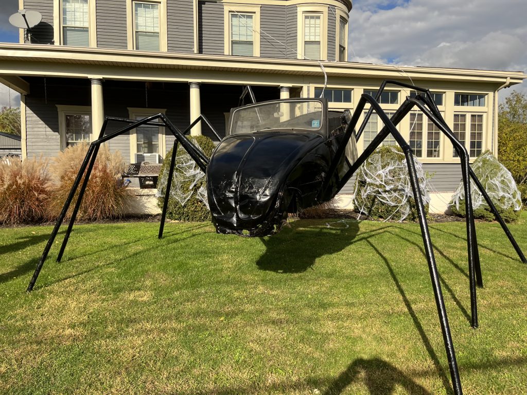 As all things spooky and creepy pop up during the Halloween season, Matthew and Kelsey PagacĢƵ unique lawn decoration this year is a bug – part spider, part Beetle. Volkswagen Beetle, that is.