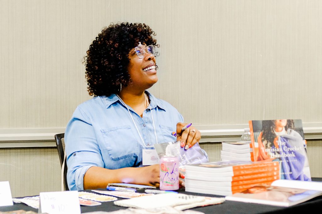 Tony Lipsey, a rising crochet star who earned her fiber arts crown when her first book, The Tunisian Crochet Handbook: A BeginnerĢƵ Guide, hit shelves in November 2021, graciously chatted, signed autographs and posed for pictures with fans.
