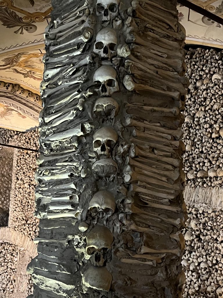 Highlights in Evora were a well-preserved Roman temple and a 16th century chapel completely decorated with bones, skulls and entire skeletons. Over the entrance to the chapel are the words, “We Bones Are Here, Waiting for Yours.” The monks believed this chapel of bones was a helpful place to meditate on the transience of material things in the undeniable presence of death.