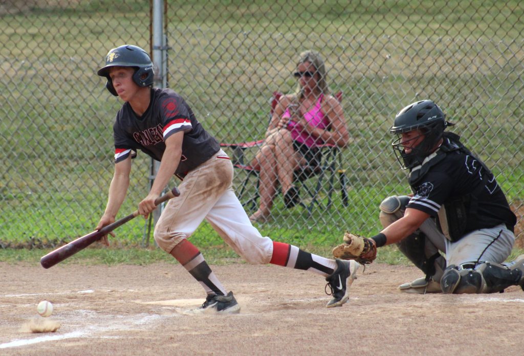 Campbell singled with one out and stole second. Jake Beveridge was safe on an infield error and stole second.