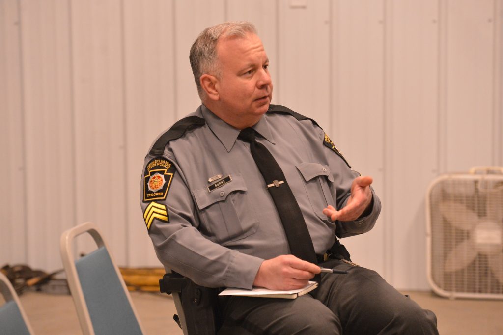 Sgt. Ryan Burns, station commander of the Waynesburg barracks, spoke about the response and the search for Jarrod Noll, 18, at MondayĢƵ meeting of the Freeport Township supervisors.