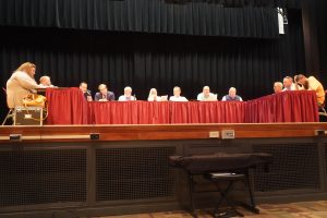 The Uniontown Area school board elected to discuss its financial future in an executive session Monday after a vote to raise taxes failed, raising concerns about a potential violation of the Sunshine Act.