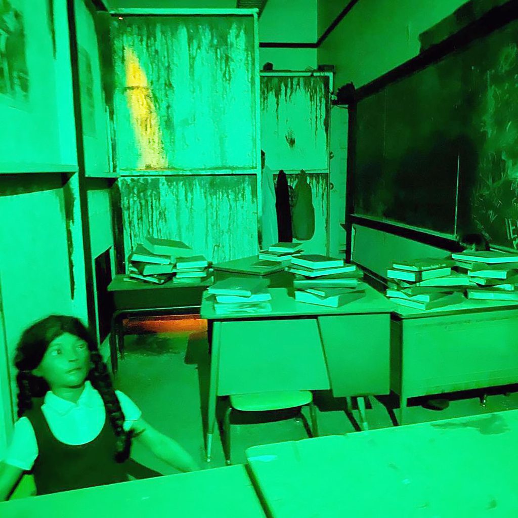 The second floor, “Classic Crawford,” is the original area. It is a classroom-themed setting and has been totally changed around with new rooms and scares added.