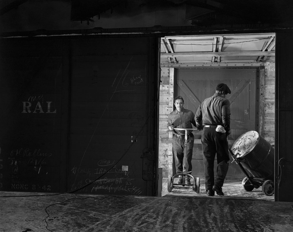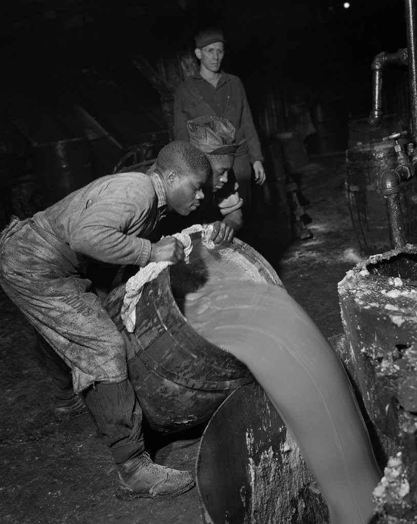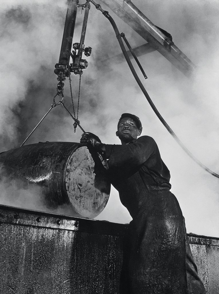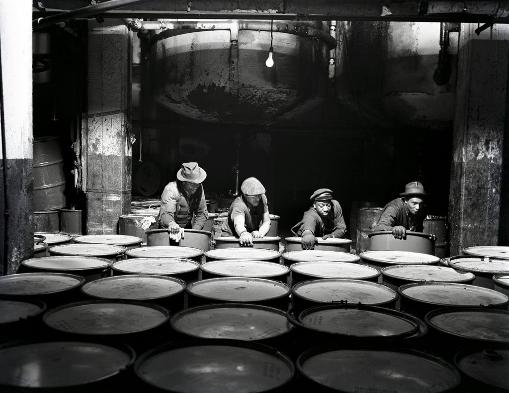 Leers pointed out that, in his photos at the grease plant, Parks is “telling the story of the industry, but heĢƵ also telling a story through the focus of the people doing the work.”