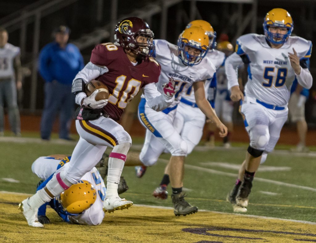 The Trojans’ defense forced three turnovers and limited West Greene to 24 total yards on offense. The Pioneers were playing without sophomore star tailback Ben Jackson, who suffered an ankle injury last week and is out for the season.