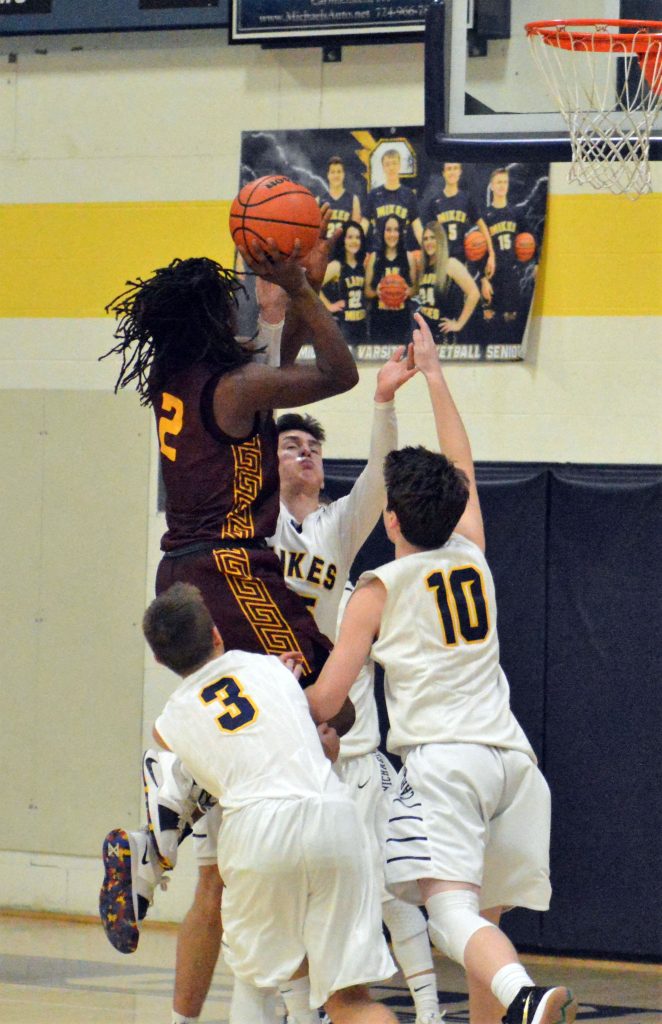 The host Mikes rallied from a 10-point, second-half deficit to force overtime but the Trojans fought out of a three-point hole with 1:04 left in the extra frame to earn a thrilling 63-60 Section 2-AA boys basketball victory.