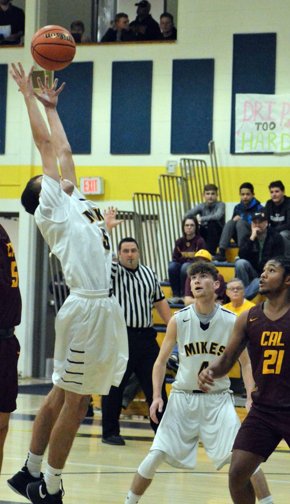 The Trojans pushed the lead up to six twice in the fourth period. Carmichaels freshman Chris Barrish hit a 3-pointer after California went up 45-39. RamseyĢƵ basket made it 48-42 but the Mikes answered with a bucket inside by Cree, two free throws by Matt Barrish and a scoop shot by Wilson to knot the score at 48-48 with 2:47 left.
