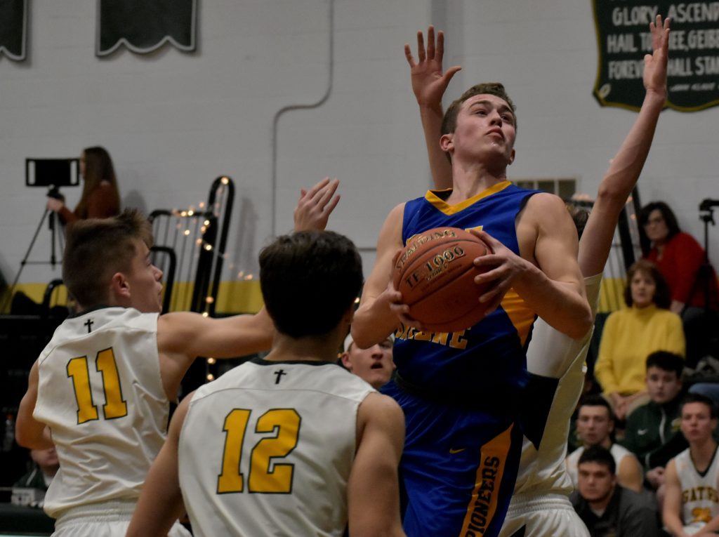 Brudnock got West Greene off to a fast start in scoring the gameĢƵ first six points, as the Pioneers held a 13-11 lead after one period. West Greene continued to control the game in the second period, outscoring the Gator,s 14-13. Austin Crouse scored six of his 21 points in the second to help the Pioneers to a 27-24 lead at the half.