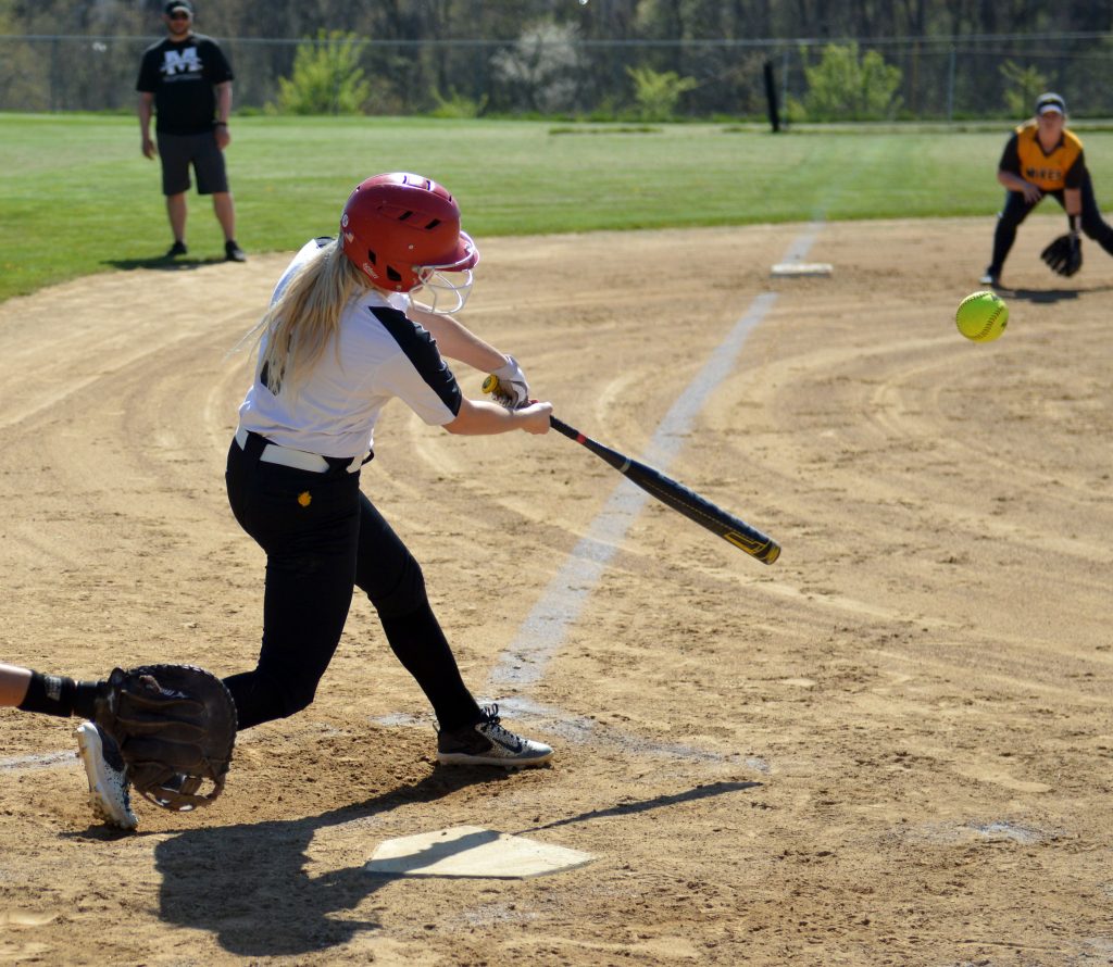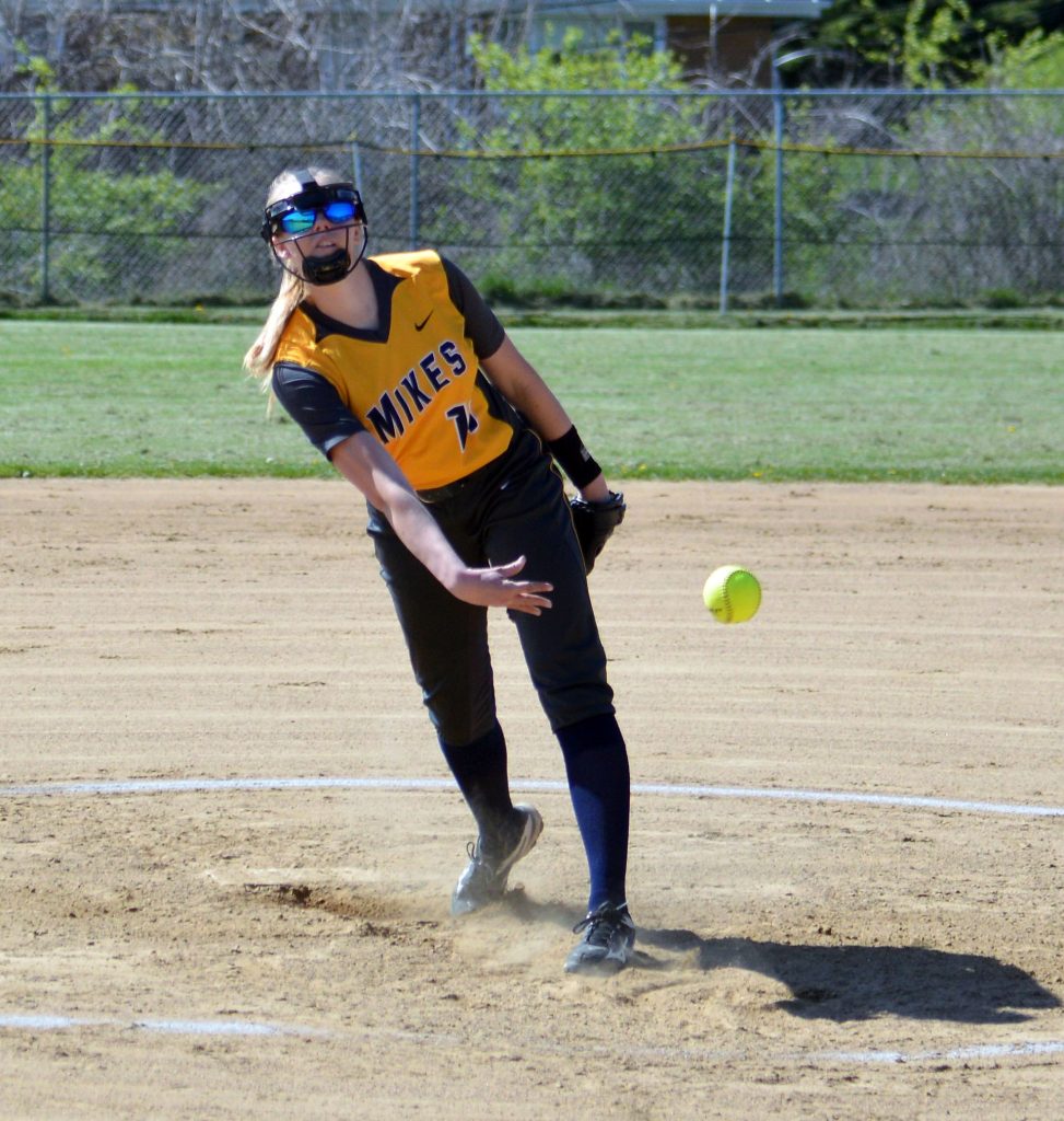 n The Lady Mikes came up with two key defensive plays in the bottom of the seventh after an error and a walk to Yorty put two on with none out. First Sinn fielded GuzzieĢƵ bunt and fired to third baseman Maddie Ewart for the force out. Then, after a strikeout, McCann made a backhand catch in short right field to rob Rock, again, of a potential game-winning hit.