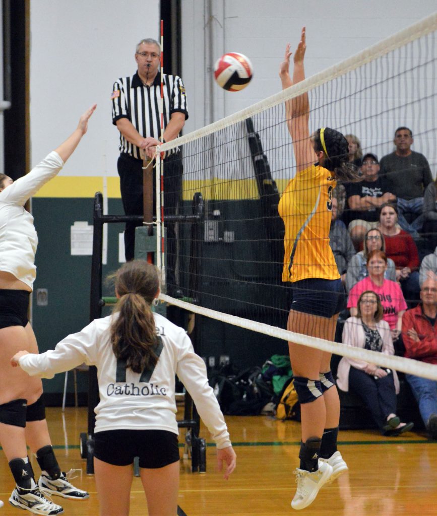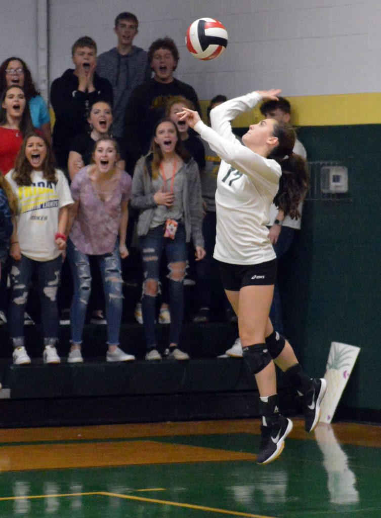 “ItĢƵ an amazing feeling because thatĢƵ been something we’ve been working on since seventh grade,” said Lady Mikes senior Micaela Ricco, who had nine service points and 15 digs. “It was always in the back of our heads that we want to win a banner, we want to be the first in school history to win a section title.”