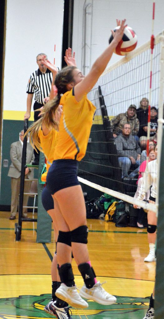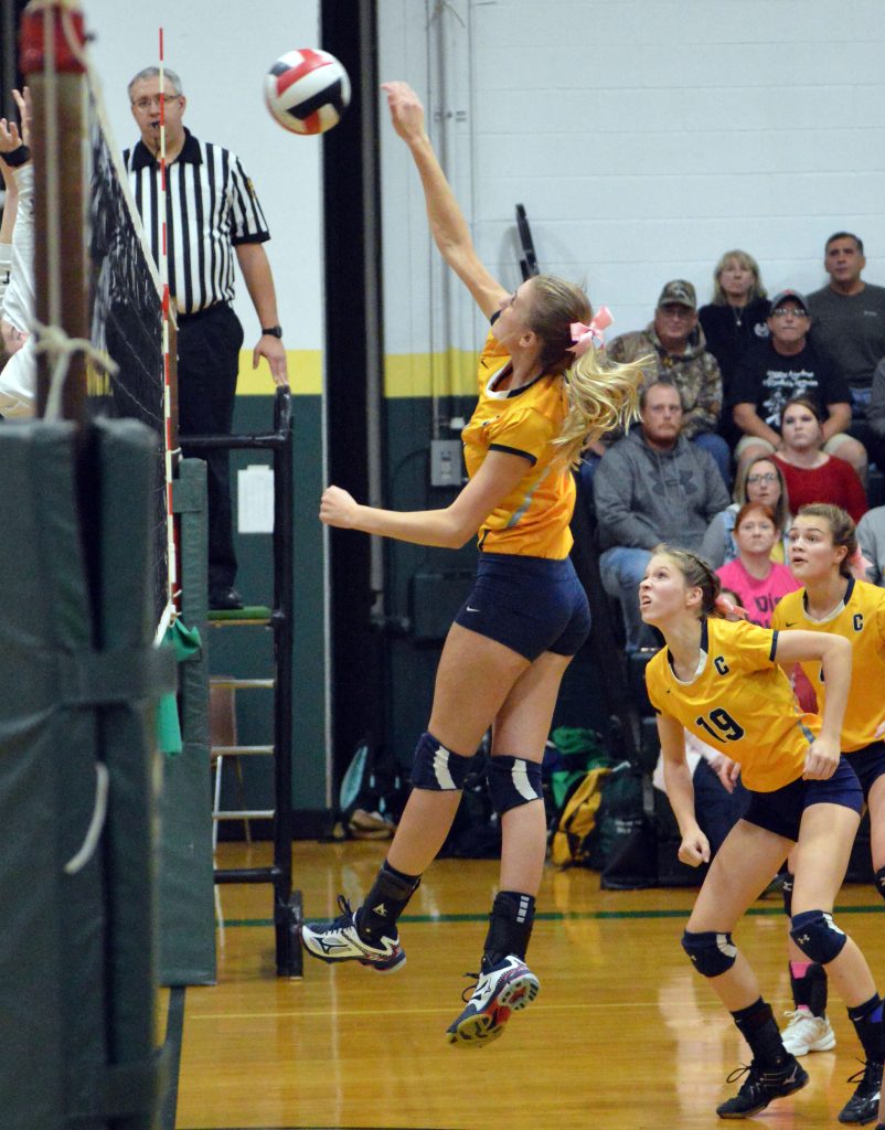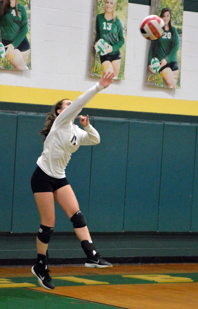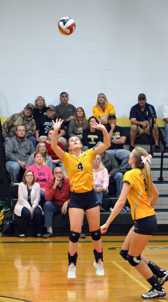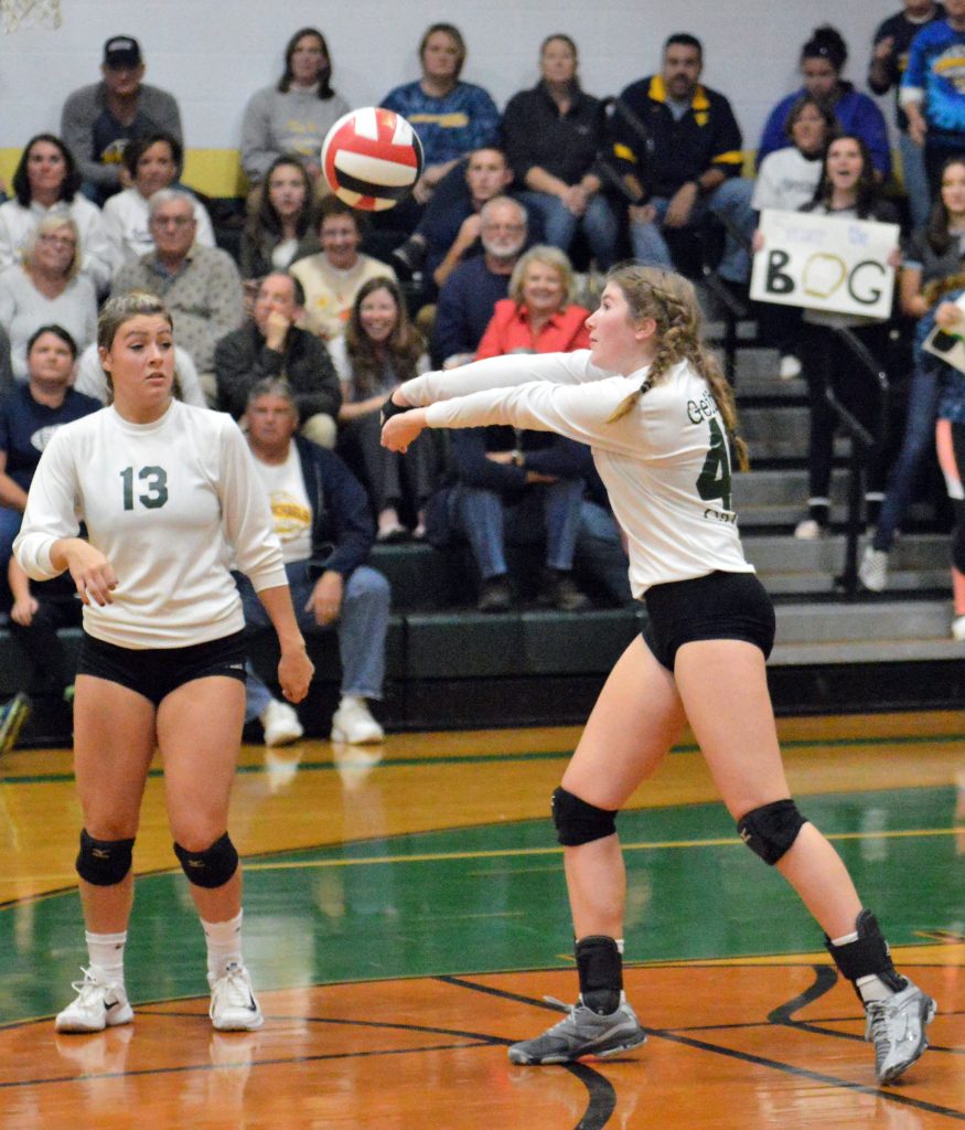 Alexandra McGee recorded five consecutive service points to give Carmichaels a 14-9 lead and it still held a 16-13 advantage when Geibel reeled off 11 points in a row, thanks in large part to the serving of Caelen Stevenson. The Lady Gators won, 25-17, to go up 2-1. Stevenson rang up six aces on the night.
