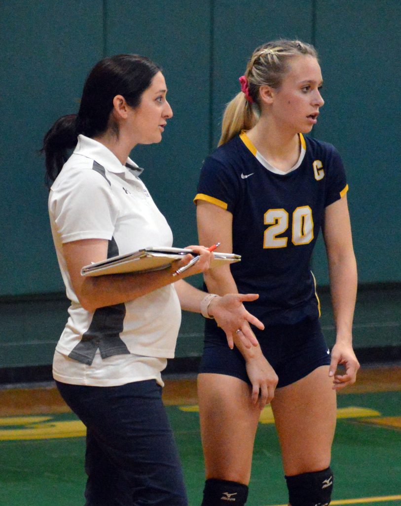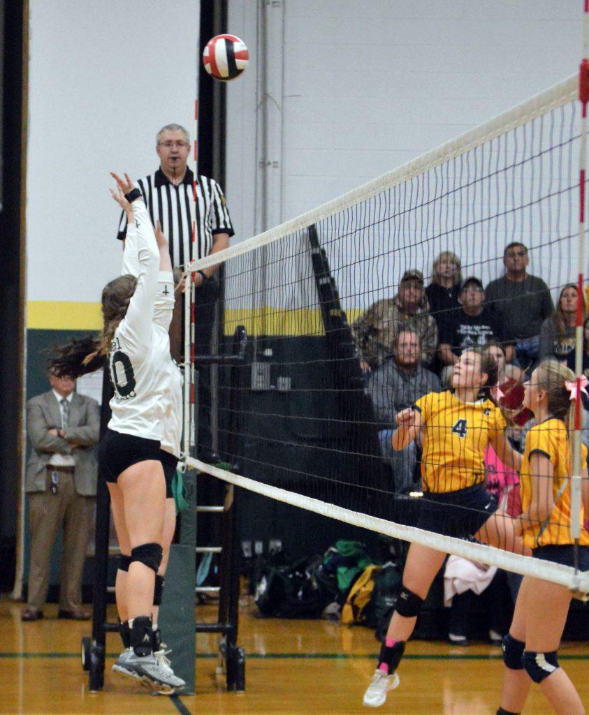 Alexandra McGee, who contributed 13 assists and 15 service points, served up an ace for the Lady Mikes out of the break, and a block by Christopher made it 14-7.