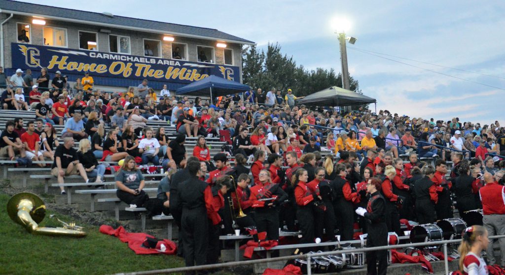 The turnover gave Carmichaels the ball at the Scotties 42 and it covered that distance in 10 plays with quarterback Kevin KellyĢƵ one-yard touchdown plunge finishing off the drive. Kelly completed consecutive 10-yard passes to Bailey Jones, on fourth and two, and Michael Robinson to give the Mikes a first and goal at the four.