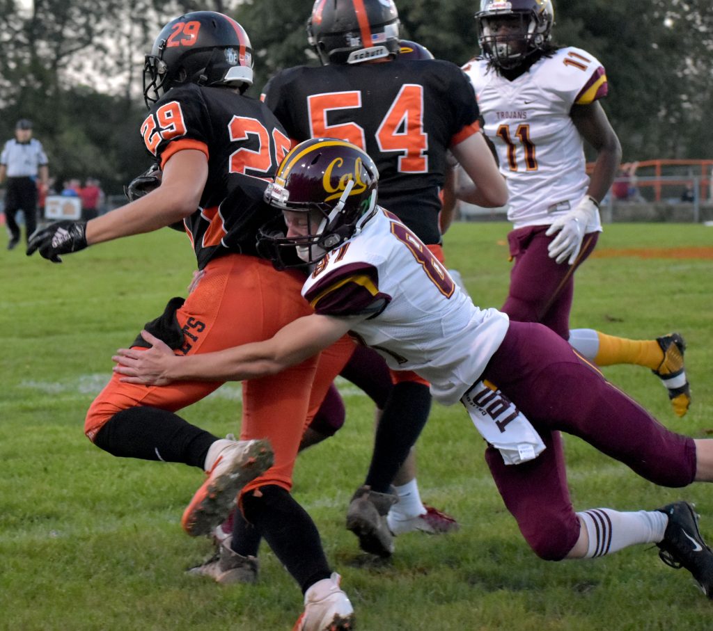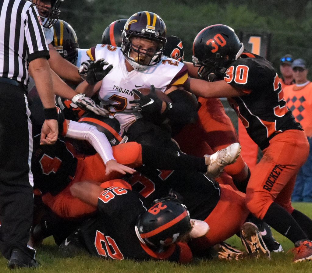 Jaeden Zuzak ran for 98 yards on just three carries for the Trojans (2-1, 2-4), including scoring runs of 36 and 53 yards.
