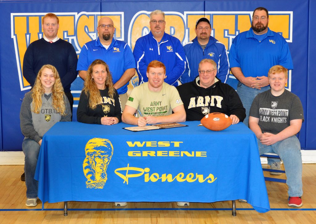 The West Greene senior signed his certificate of commitment used by the service academies to play NCAA Division-I football at Army.