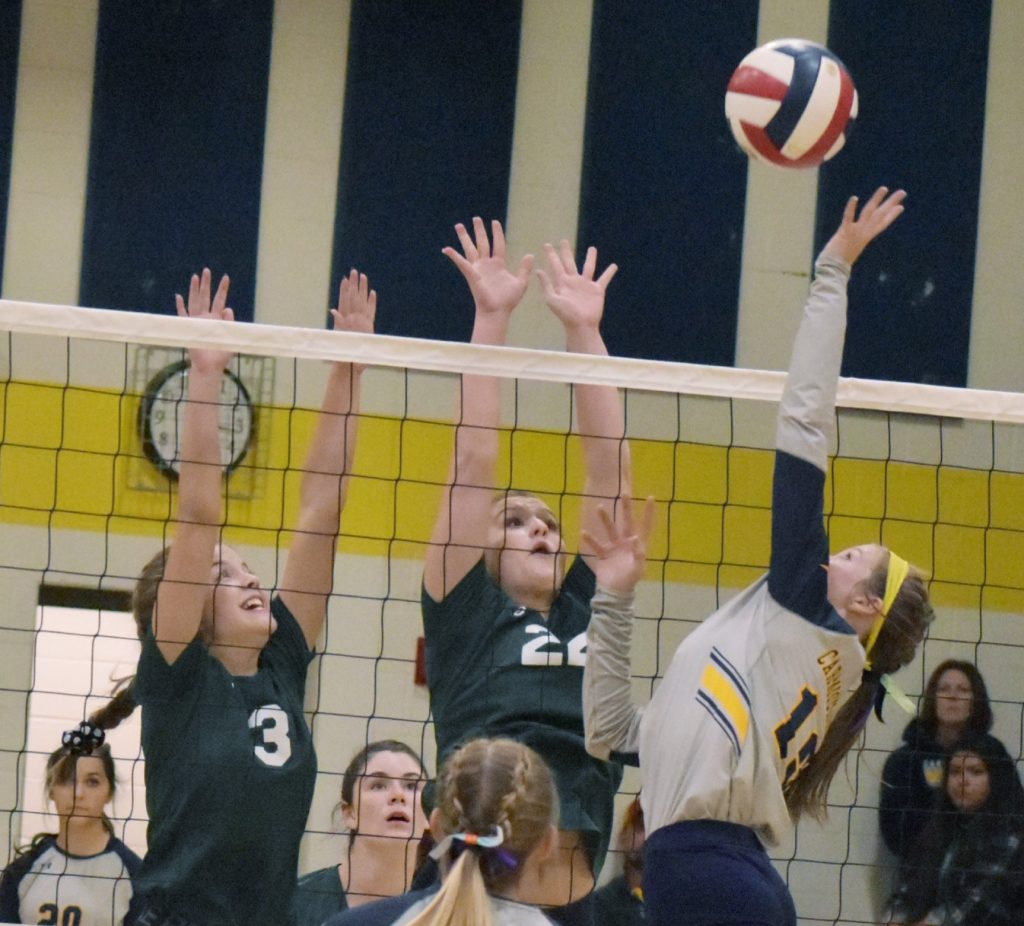 Carmichaels trailed 18-15 in the third game but ran off nine of the next 13 points before Christopher wrapped it up with a spike, 25-22.